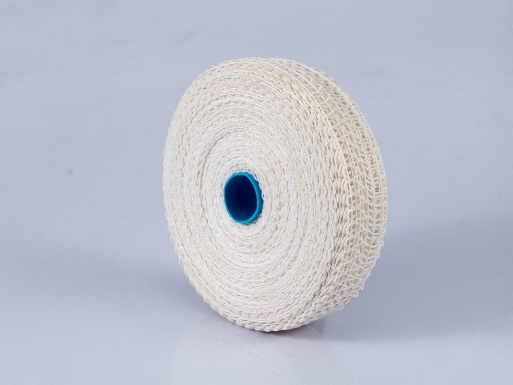 Make-Up : A weft knitted synthetic net in tubular form with inlaid spirals of covered natural rubber.